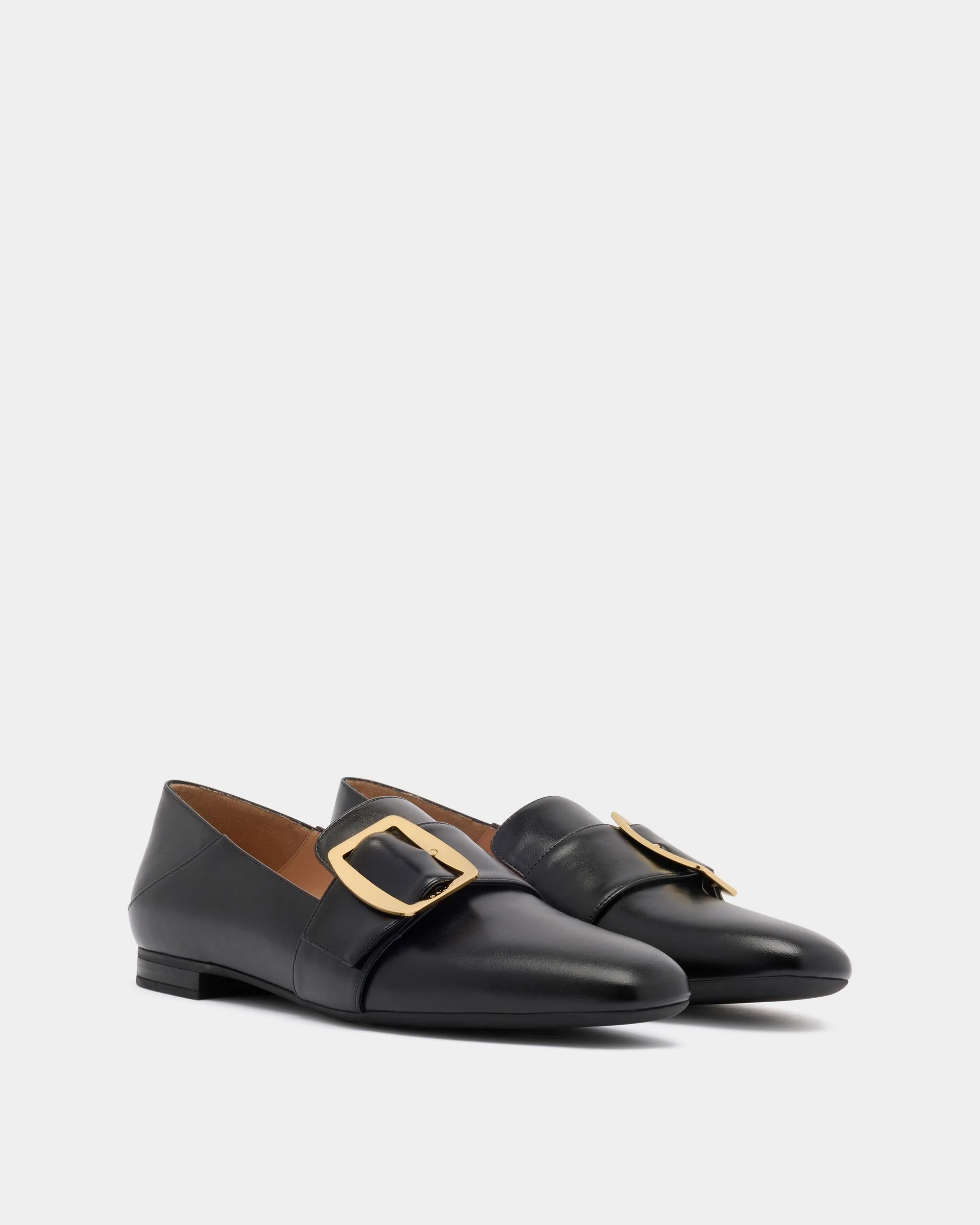 In Black calfskin, this Bally Boucle slipper seamlessly blends a Bally icon with modern aesthetics in an interpretation of the brand's heritage. To the front, a large metal buckle with the Bally logo secures a strap which extends up and over the vamp. The heel can be folded down and styled as a mule.