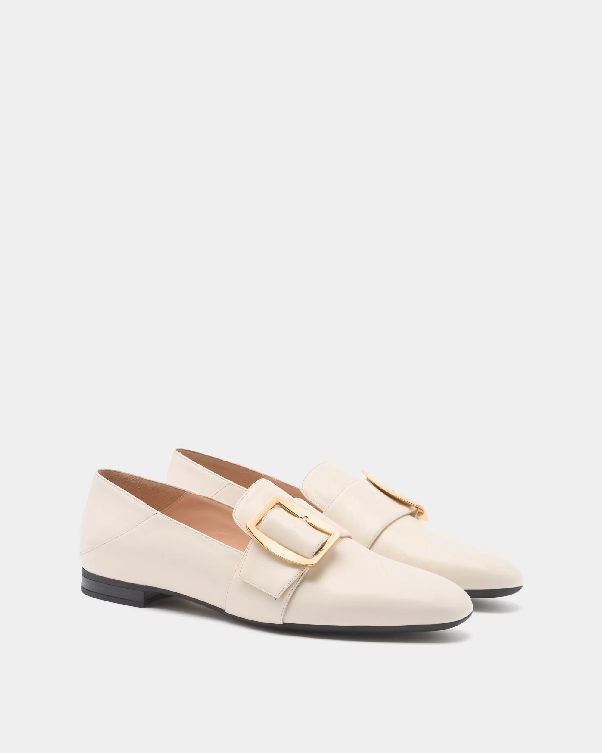 In Ivory calfskin, this Bally Boucle slipper seamlessly blends a Bally icon with modern aesthetics in an interpretation of the brand's heritage. To the front, a large metal buckle with the Bally logo secures a strap which extends up and over the vamp. The heel can be folded down and styled as a mule.