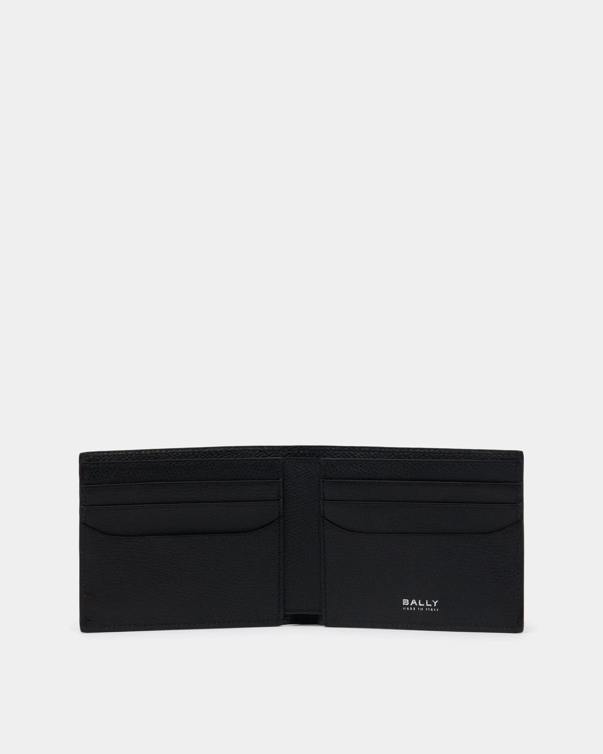 This Bally Essential wallet features six card slots and a cash compartment. The black grained calfskin silhouette is enriched by a palladium-hue foil logo.
