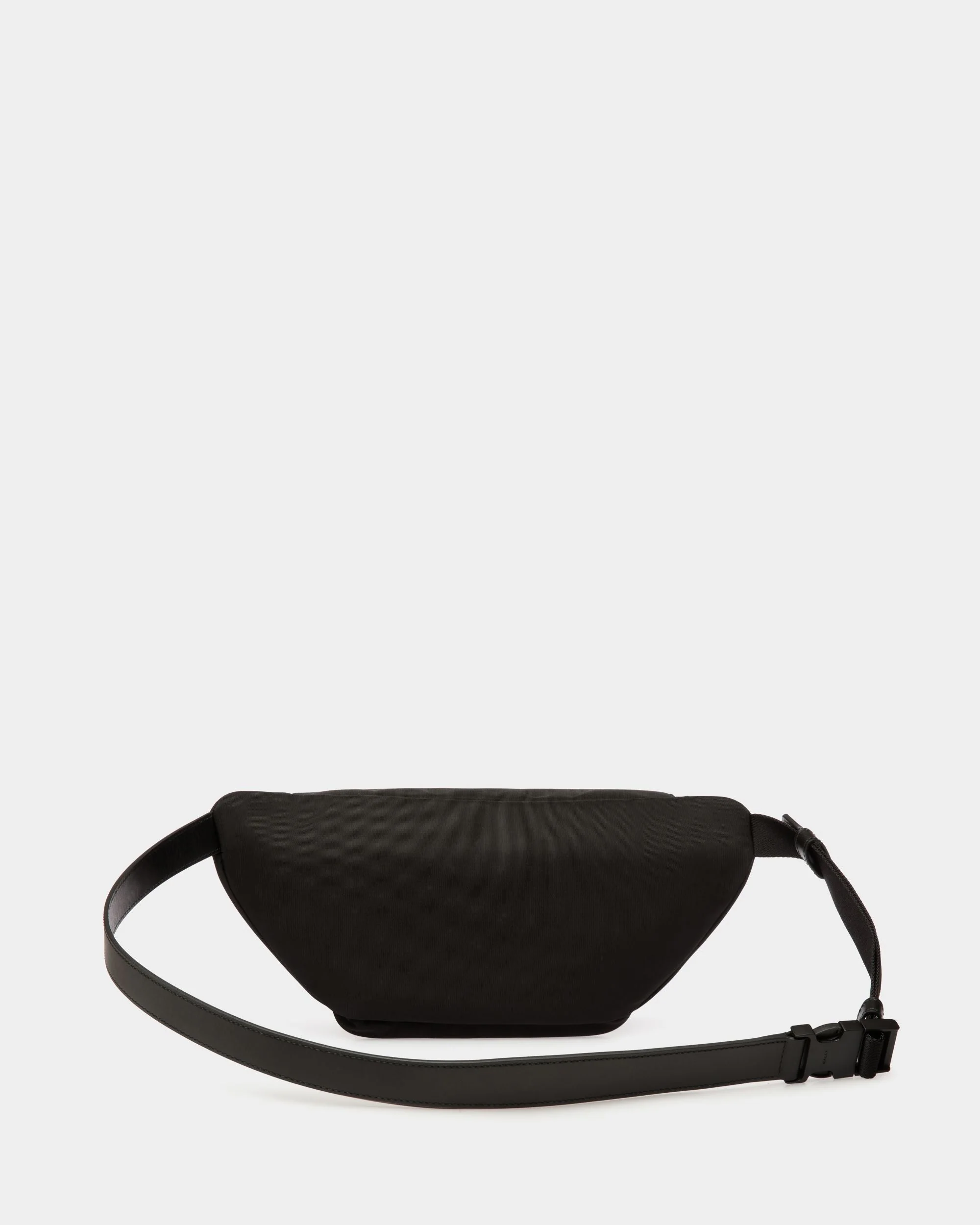 This versatile Code belt bag can be worn around the waist or slung over the shoulder. Made from black synthetic fabric with leather trim, it's completed by a small front pocket and a Bally Ribbon placed centrally.