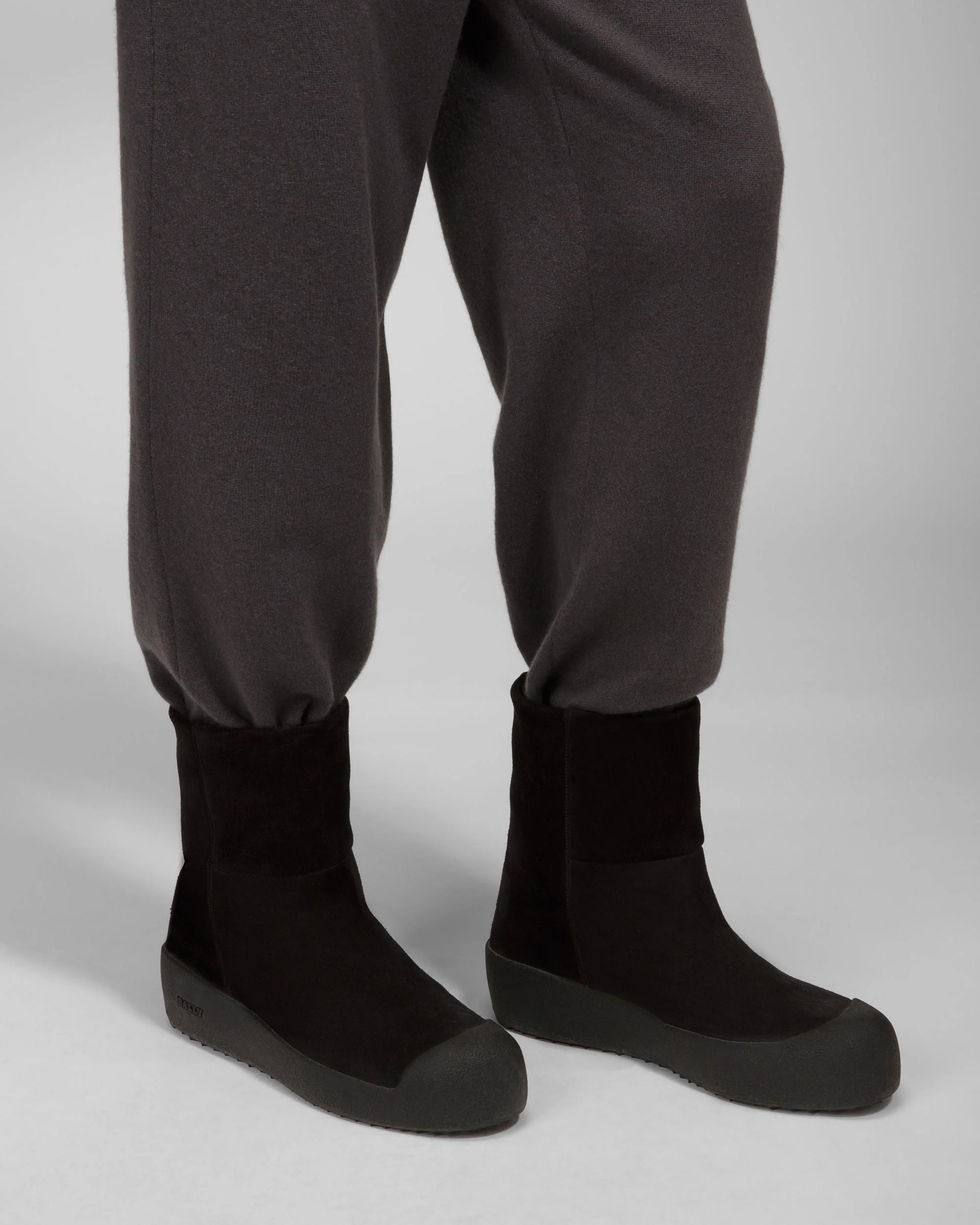 Drawing on a long heritage of crafting footwear to tackle the worst winter conditions in Bally's native Switzerland, the Bally Curling collection was originally introduced in 1950 and remains a trusted cold-weather favorite for its engineered blend of contemporary style and the latest footwear technology. Crafted from black suede leather, the Gstaad boot boasts a technical sole made up of five layers: shearling and cork layers insulate from cold and provide added cushioning; EVA rubber gives added comfort; cotton fiber wadding is designed to add long-lasting durability and resistance; and the rubber Vibram® Arctic Grip sole is specifically engineered and designed to provide maximum grip on cold, iced or snowy surfaces. This style features a rubber toe cap and shearling fur lining.