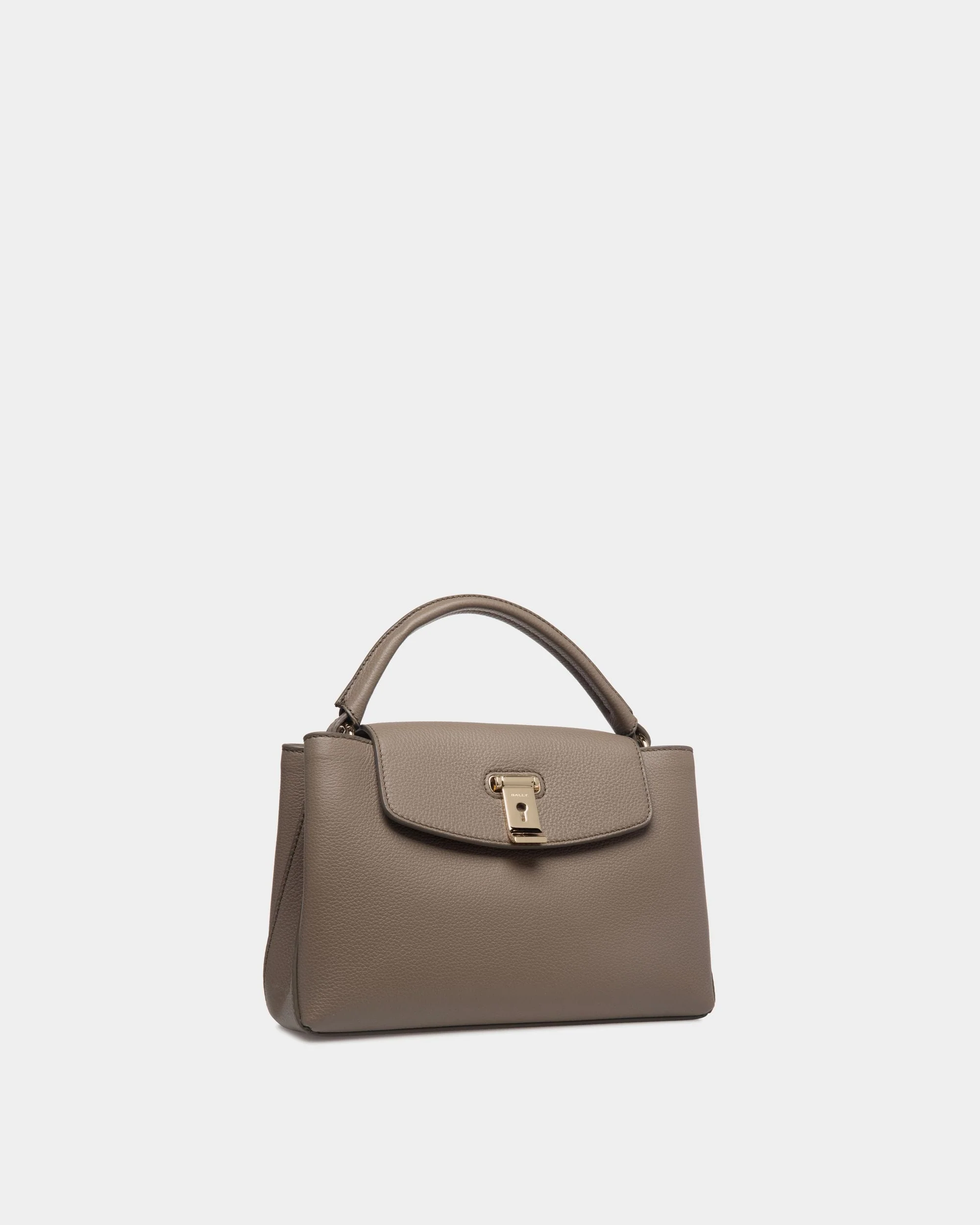 Lock Me Small Top Handle Bag in Taupe Grained Leather