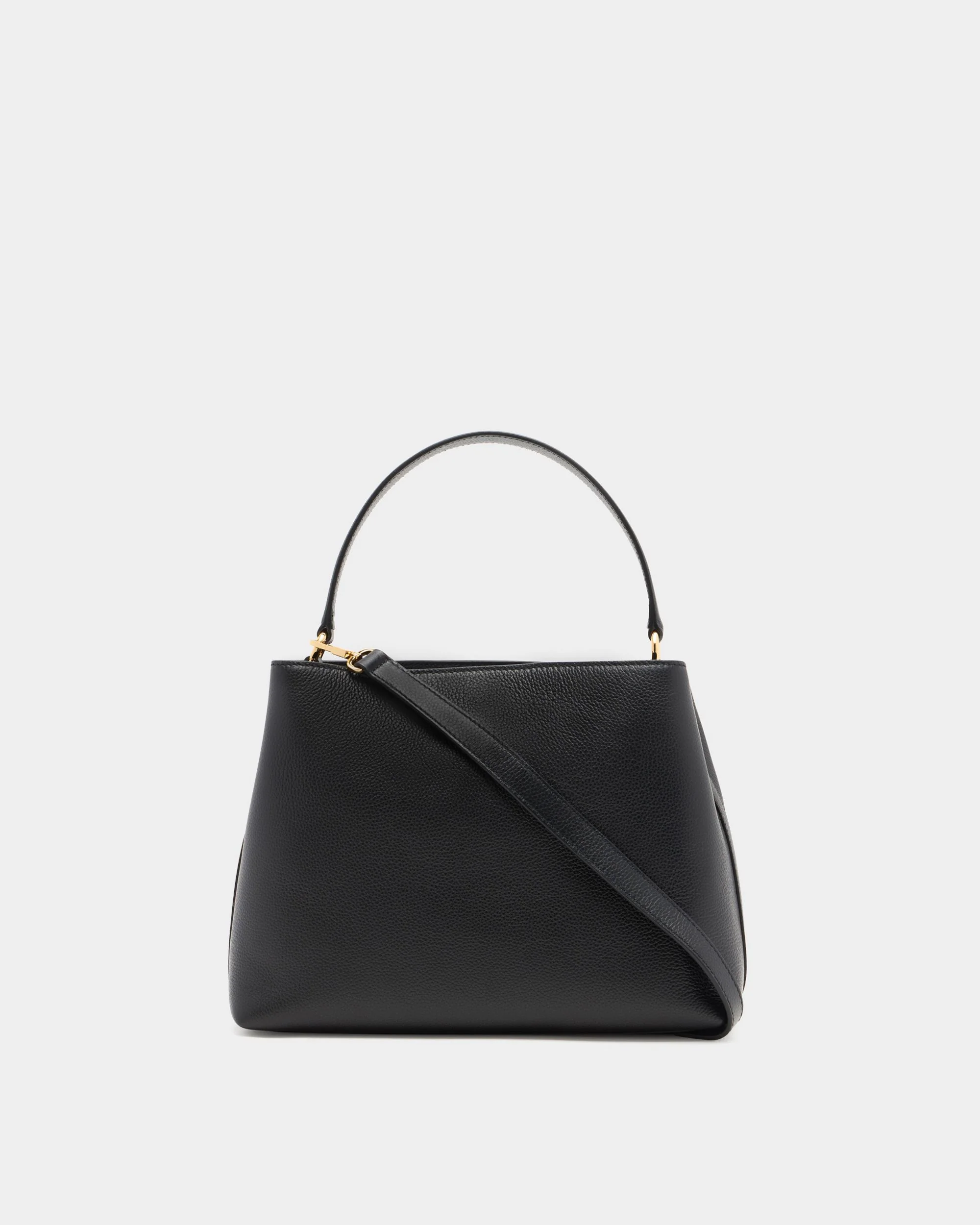 A refined everyday style, the Lock Me top handle bag in black grained leather is designed to be carried by hand or on the shoulder thanks to its wide drop handle and detachable and adjustable strap. The signature Lock Me closure in gold-tone metal secures the structured silhouette of this bag.