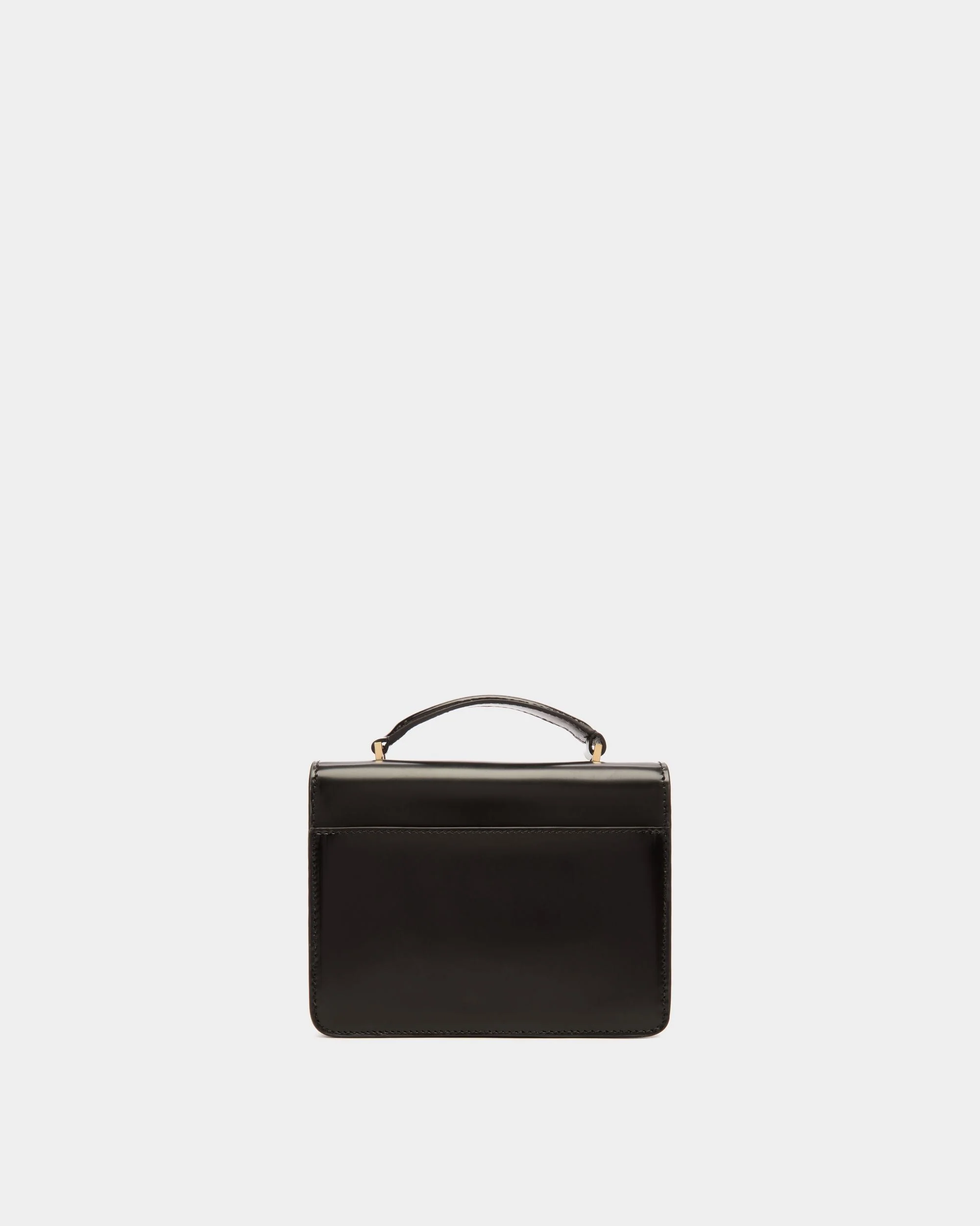 Chic, feminine and youthful, a geometric silhouette is the hallmark of the Ollam top handle bag in black brushed leather. With its classic design and superior craftsmanship, this bag is the epitome of luxury and sophistication. The gold toned hardware closure in the shape of the Bally Ribbon adds meaning and elegance to the collection.