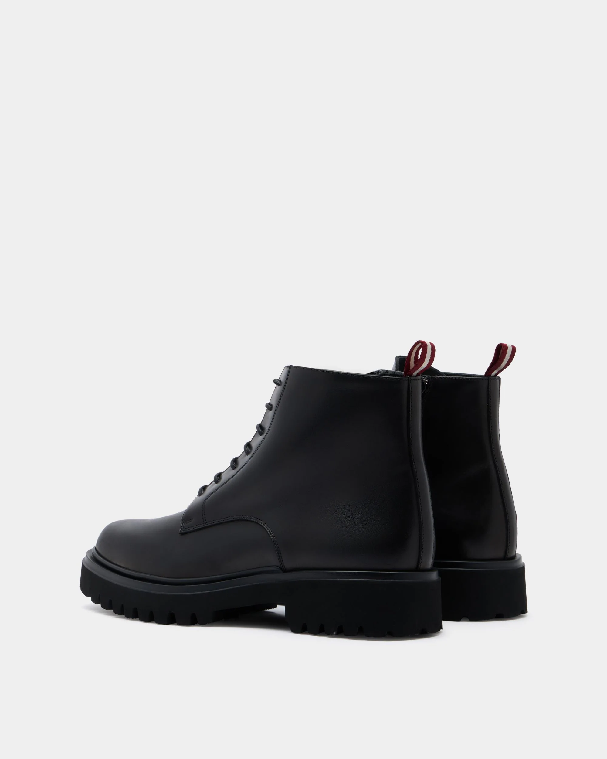 This Onyce bootie features a lace-up design in fine black calfskin with silver-tone metal eyelets. The chunky rubber sole ensures a modern silhouette.